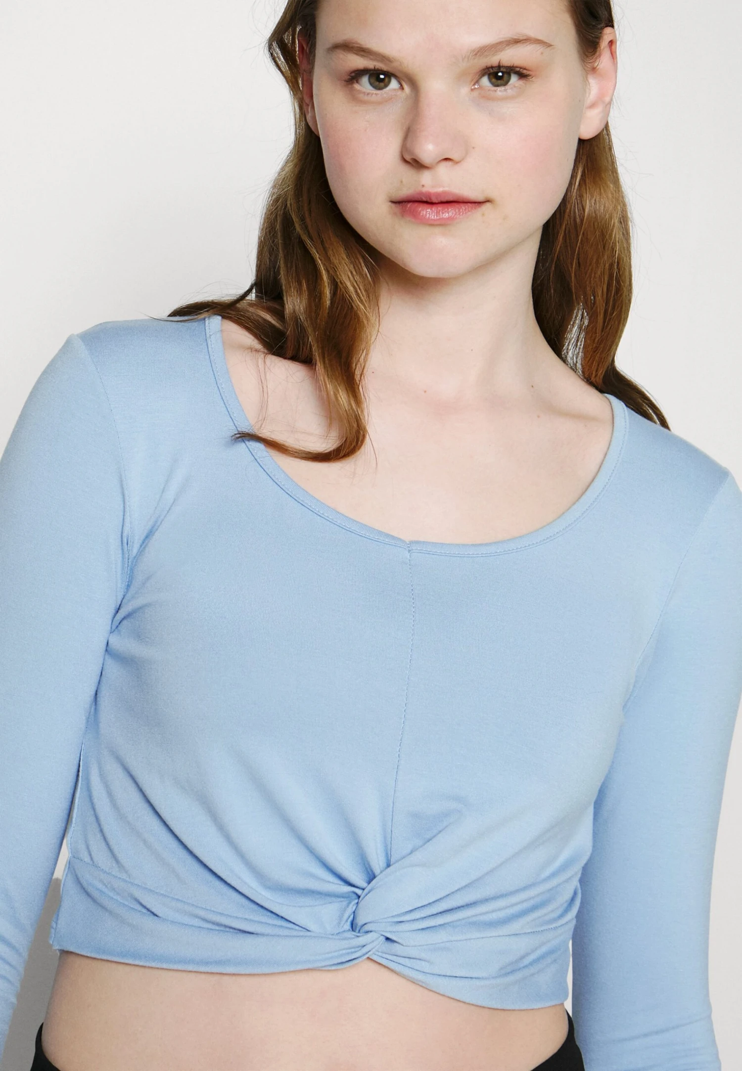 Wal G Karina Tie Top – T-Shirt À Manches Longues – Dusty Blue