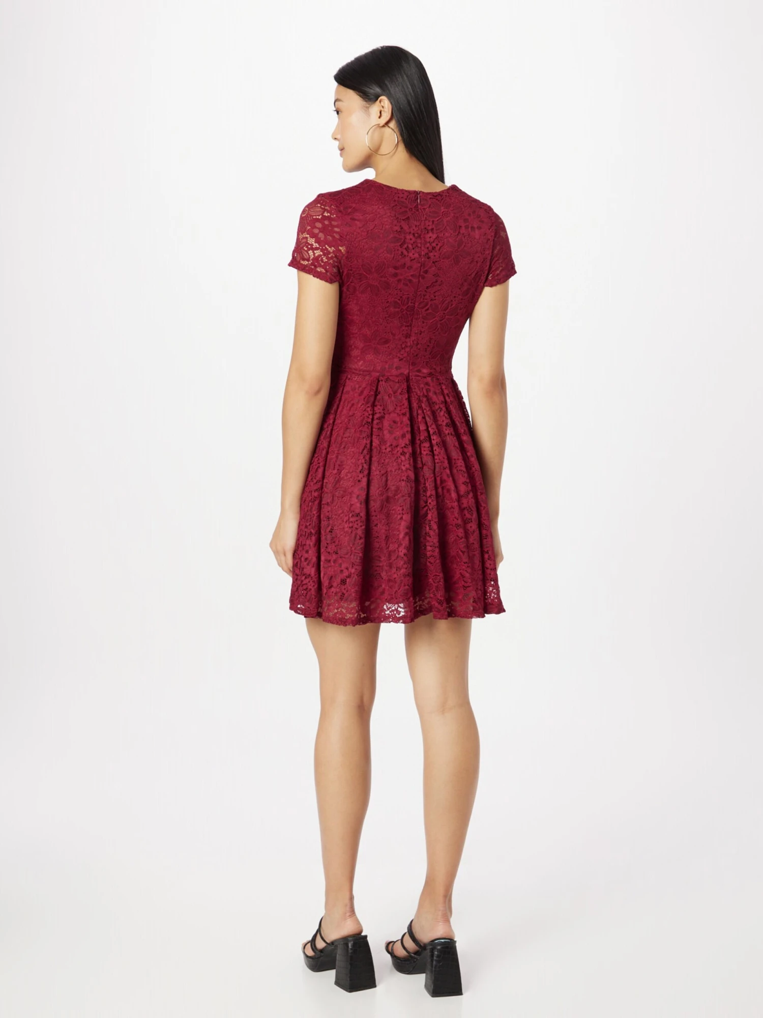 Couleur unieCol rondDentellePlisOurlet / bord surpiquéCoupe évaséeOurlet droitFermeture à glissière dorsalePoignée structuréeDoux au toucherFermeture à glissière