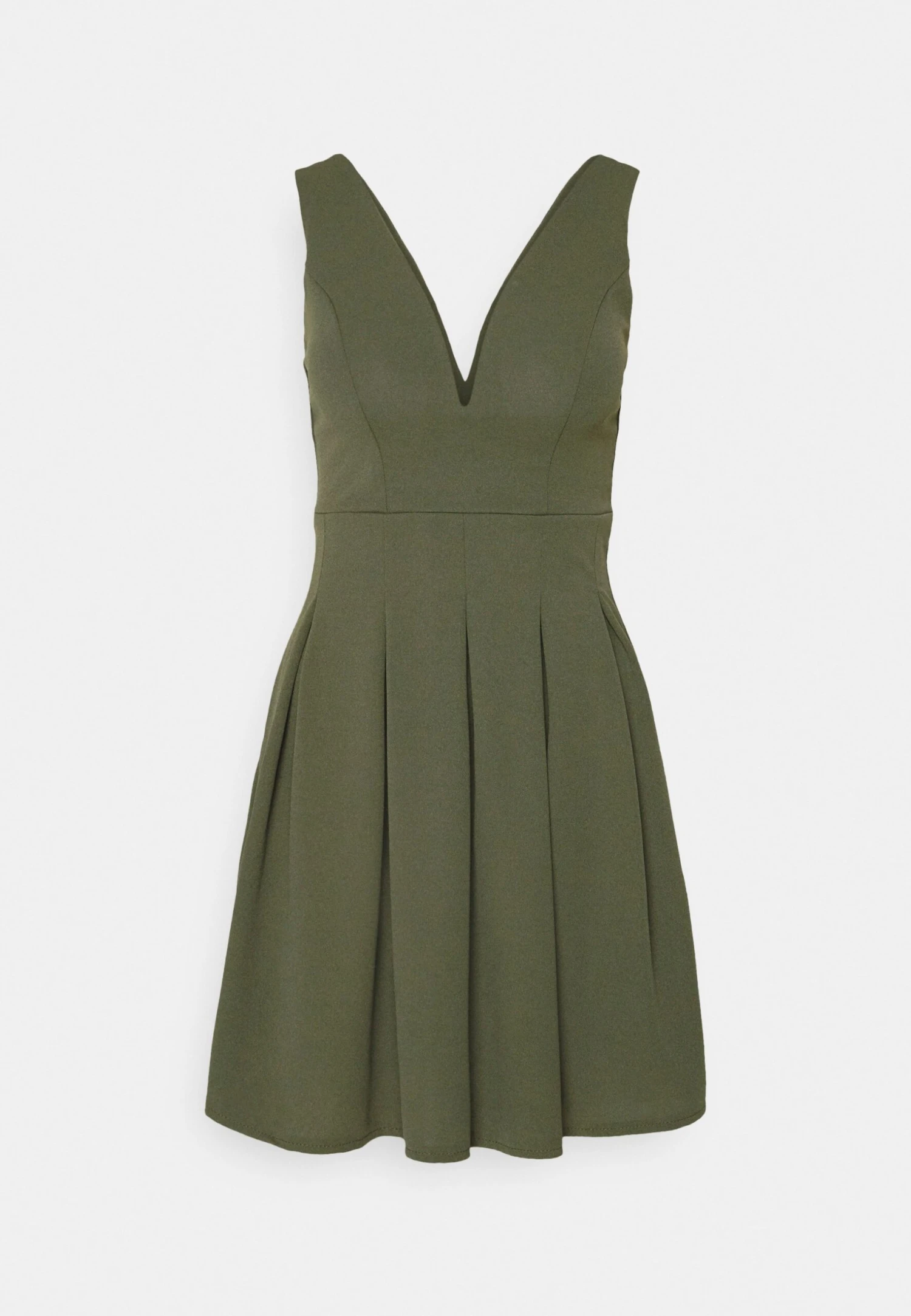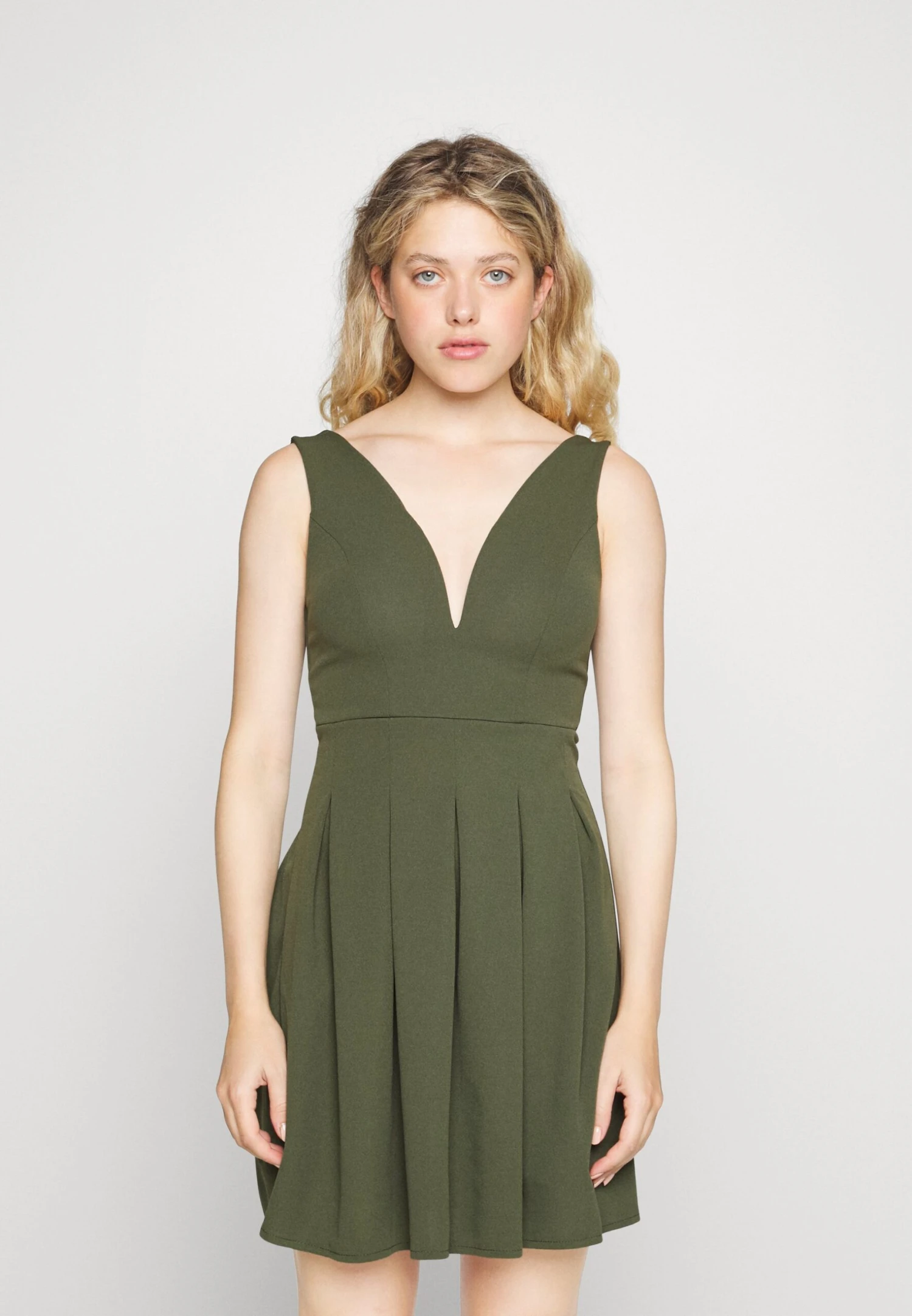 Wal G Plain V Neck Skater – Robe De Jour – Olive Green