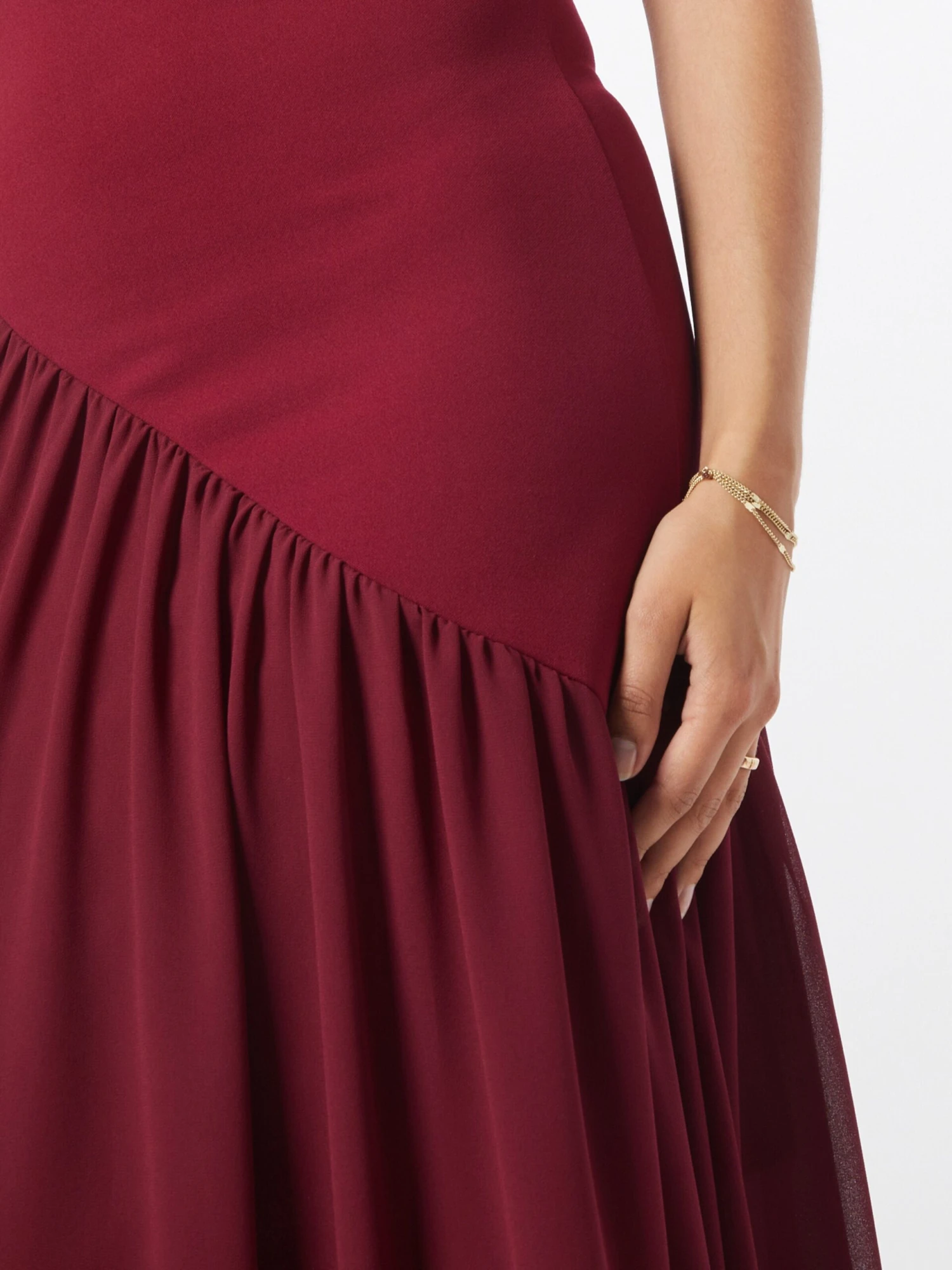 Couleur unieBretelles normalesCol VDrapé / froncéOurlet / bord surpiquéFermeture à glissière dorsaleDécolleté profondLégèrement transparentCoutures ton sur tonTissu fluideFermeture à glissière