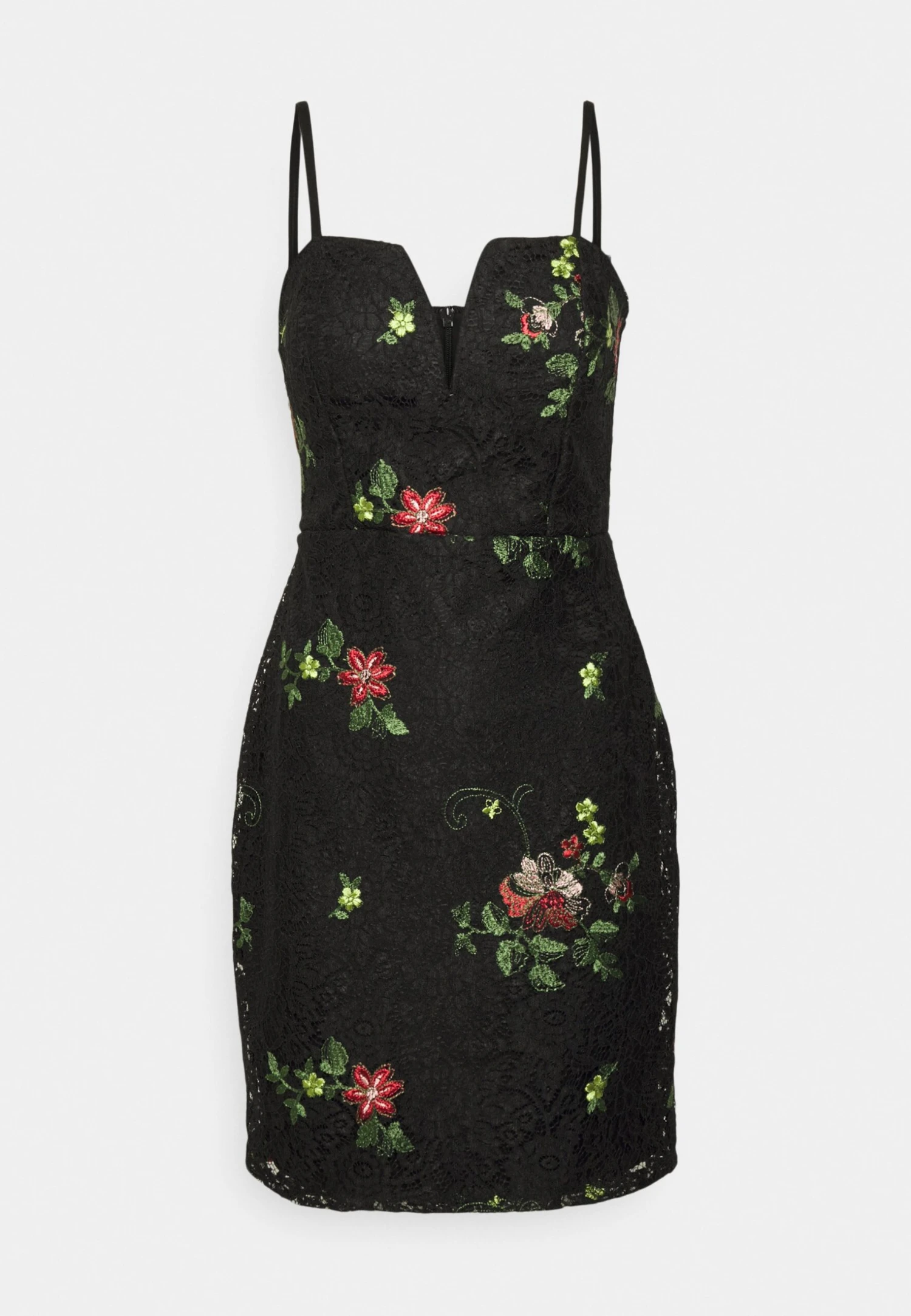 Wal G Simran Midi Floral Dress – Robe De Soirée – Black