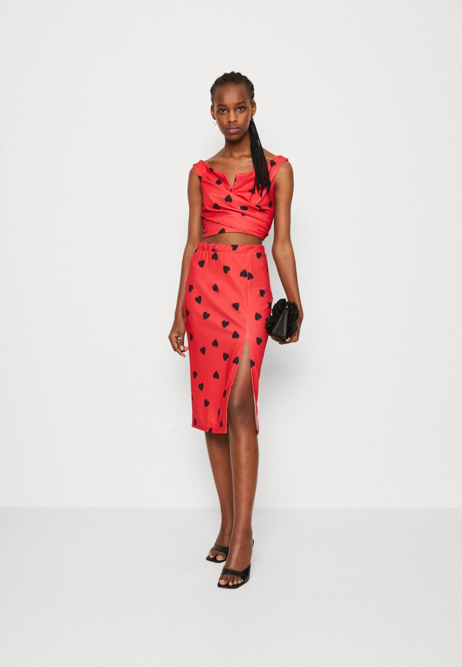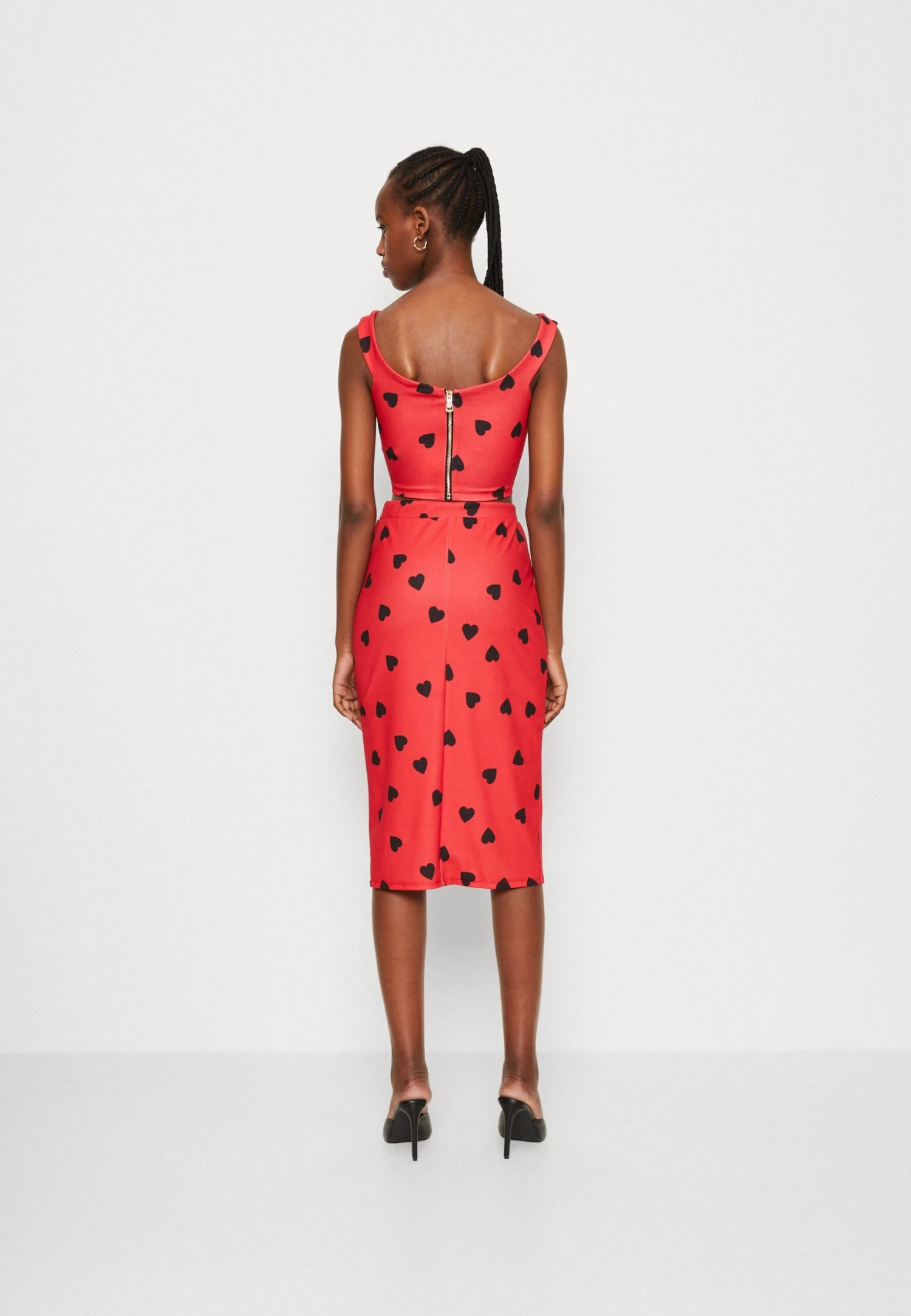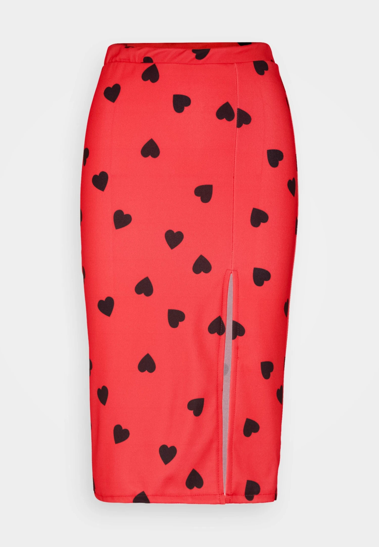 Wal G Valentines Heart Midi Skirt – Jupe Crayon – Red/Black